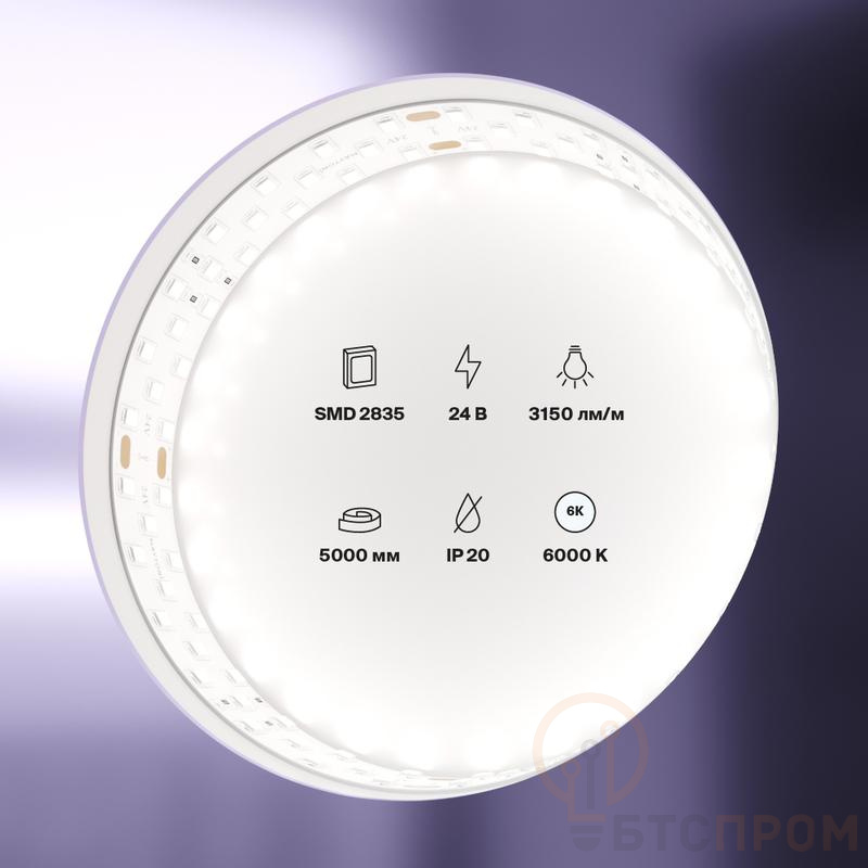 Лента светодиодная 24В 2835 27Вт/м 6000К IP20 19мм (уп.5м) Maytoni 20033 фото в каталоге от BTSprom.by