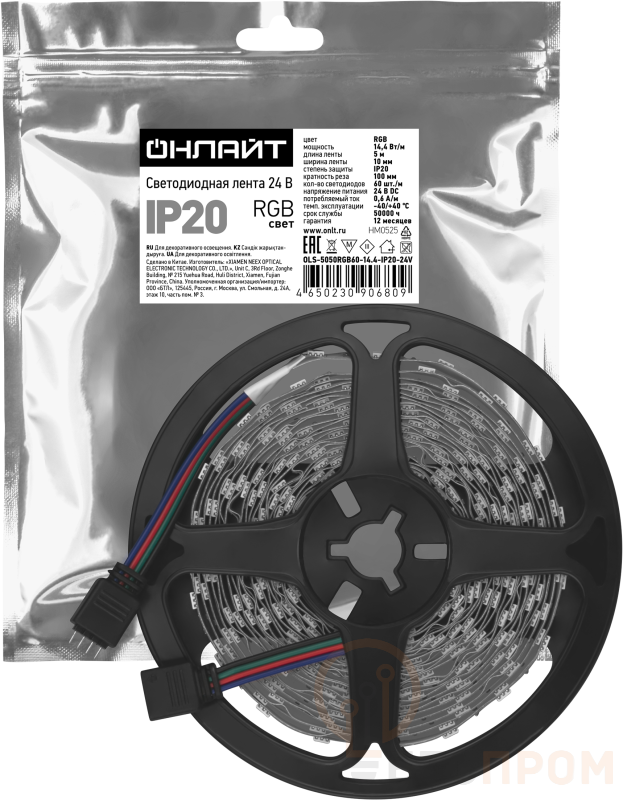 Лента светодиодная 90 680 OLS-5050RGB60-14.4-IP20-24V ОНЛАЙТ 90680 фото в каталоге от BTSprom.by