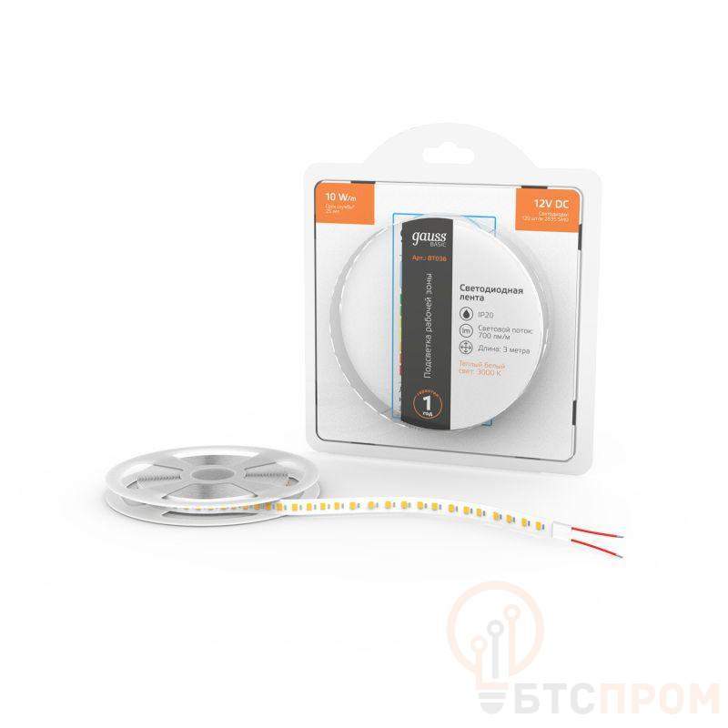 Лента светодиодная Basic 2835/120-SMD 10Вт/м 3000К тепл. бел. IP20 700лм/м 12В 8мм (уп.3м) GAUSS BT036