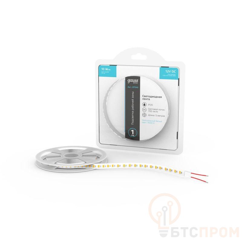 Лента светодиодная Basic 2835/120-SMD 10Вт/м 4000К нейтр. бел. IP20 700лм/м 12В 8мм (уп.5м) GAUSS BT040
