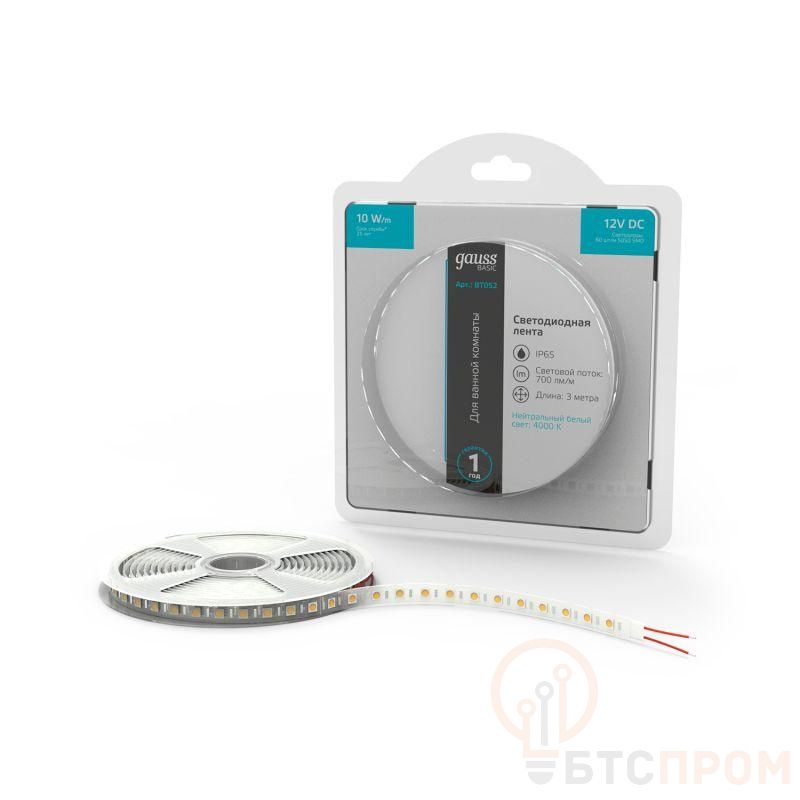 Лента светодиодная Basic 5050/60-SMD 10Вт/м 4000К нейтр. бел. IP65 700лм/м 12В 10мм (уп.3м) GAUSS BT052