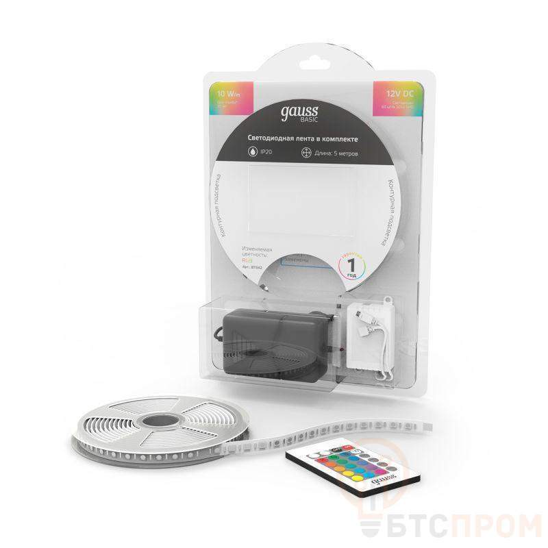 –Лента светодиодная Basic 5050/60-SMD 10Вт/м RGB IP20 700лм/м 12В 10мм драйвер (уп.5м) GAUSS BT042