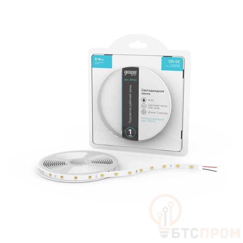 Лента светодиодная Basic 5050/60-SMD 8Вт/м 4000К нейтр. бел. IP20 900лм/м 12В 10мм (уп.5м) GAUSS BT025