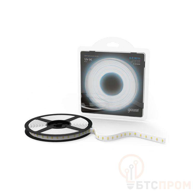 Лента светодиодная Black 2835/60-SMD 4.8Вт/м 6500К холод. бел. IP20 210лм/м 12В (блист.5м) GAUSS 312000305