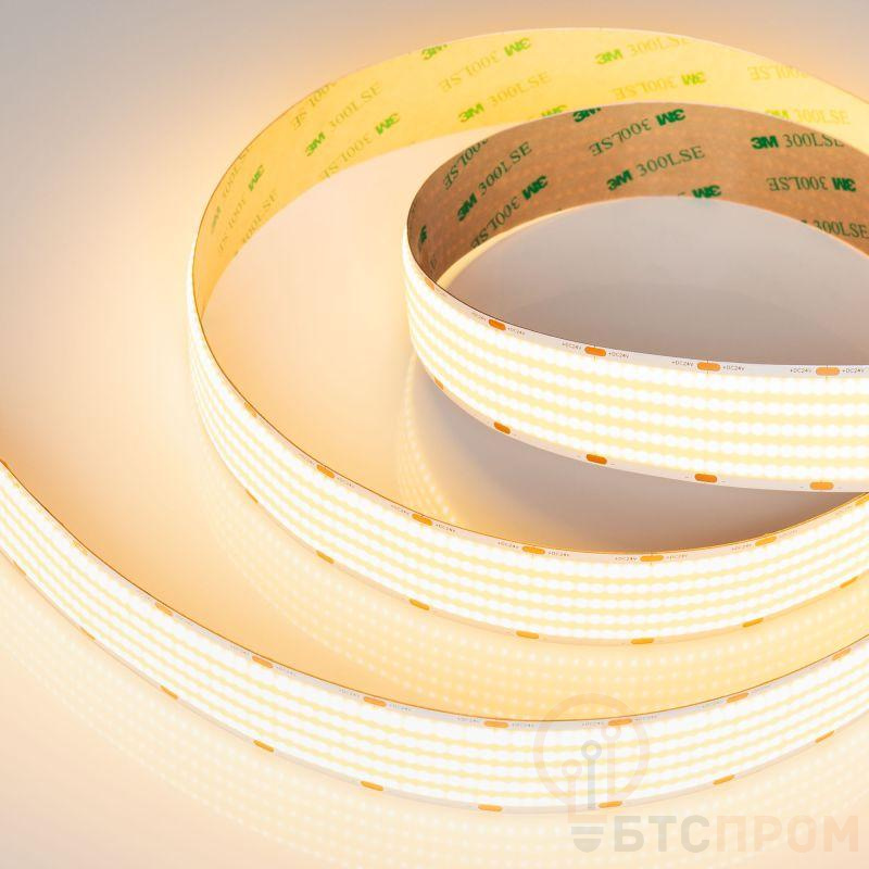 Светодиодная широкая лента сплошного свечения COB серии X1600. Светодиоды CSP, 1600 шт/м, белая плата шириной 30 мм, скотч 3M. Цвет ТЕПЛЫЙ 2700K, индекс цветопередачи CRI>90, угол 180°. Питание 24 В, мощность 40 Вт/м (200 Вт на 5 м). Размеры 5000x30x1.6 мм. Мин. отрезок 25 мм, 40 светодиодов. Цена за 1 м. Обязательна установка на профиль.