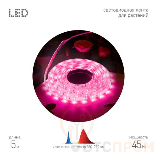 Идеально подходит для подсветки рассады, комнатных растений, зелени на кухне, а также для организации эффективного искусственного освещения в зимних садах и небольших теплицах. Гибкая основа позволяет легко монтировать ленту на любые поверхности.