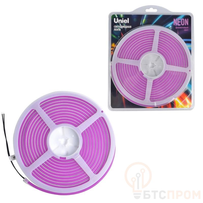 Лента светодиодная гибкая ULS-N01-2835-120LED/m-6mm-IP67-DC12V-9W/m-5M-PURPLE NEON (блист. 5м) свет фиолет. Uniel UL-00009089
