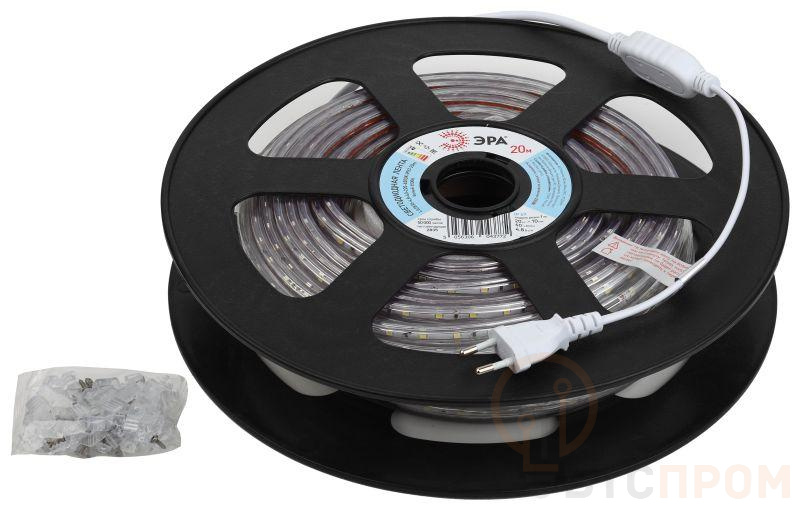 <p style="text-align:justify">ЭРА Лента светодиодная LS2835-4,8-60-220-6500К-IP67-20m (4/96) со степенью защиты от пыли и влаги IP67 - рекомендуется для уличной подсветки. Cветодиодная лента устанавливается при помощи крепежей (монтажных скоб), монтаж на двусторонний скотч исключён. Торцы ленты необходимо закрывать заглушками. Рекомендуется для уличной подсветки.. Рабочее напряжение ленты составляет 220В, а мощность равна 4,8 Вт/м. Светодиодная лента обладает световым потоком 350 Лм/м, и цветом свечения - холодный белый (6500 K) <strong>ВНИМАНИЕ:</strong> - светодиодную ленту с напряжением 220В допустимо подключать последовательно отрезками не более 100 м. - во избежание выхода из строя не допускается длительная работа ленты в смотанном виде
