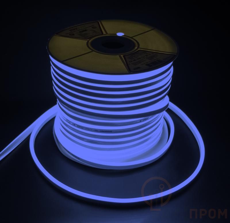 Лента светодиодная PFN-01 "Неон" 2835/120 BLUE IP65 (без аксессуаров) син. (уп.50м) JazzWay 5016453B — это синяя неоновая лента для декоративной и сигнальной подсветки. Создает яркие акценты в дизайне интерьеров, клубов, сцен, а также для наружного оформления. Защита IP65. Бухта 50 метров.