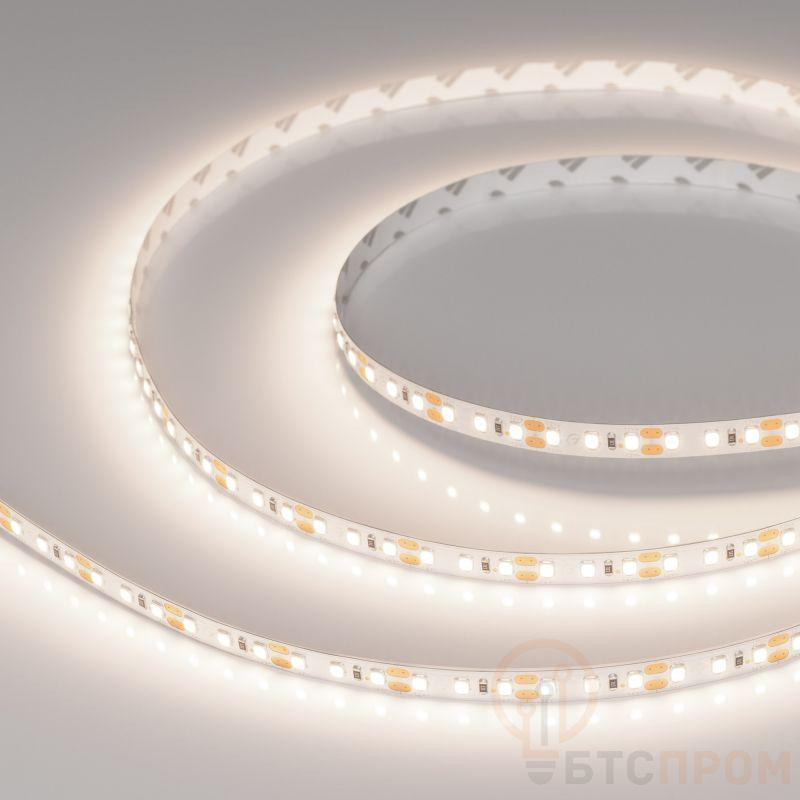 Светодиодная лента RT серии A120. Светодиоды SMD 2835, 120 шт/м, белая плата шириной 8 мм, скотч 3M. Цвет ДНЕВНОЙ 4000K, индекс цветопередачи CRI>85, угол 120°. Питание 12 В, мощность 9.6 Вт/м (48 Вт на 5 м). Размеры 5000x8x1.5 мм. Мин. отрезок 25 мм, 3 светодиода. Цена за 1 м.