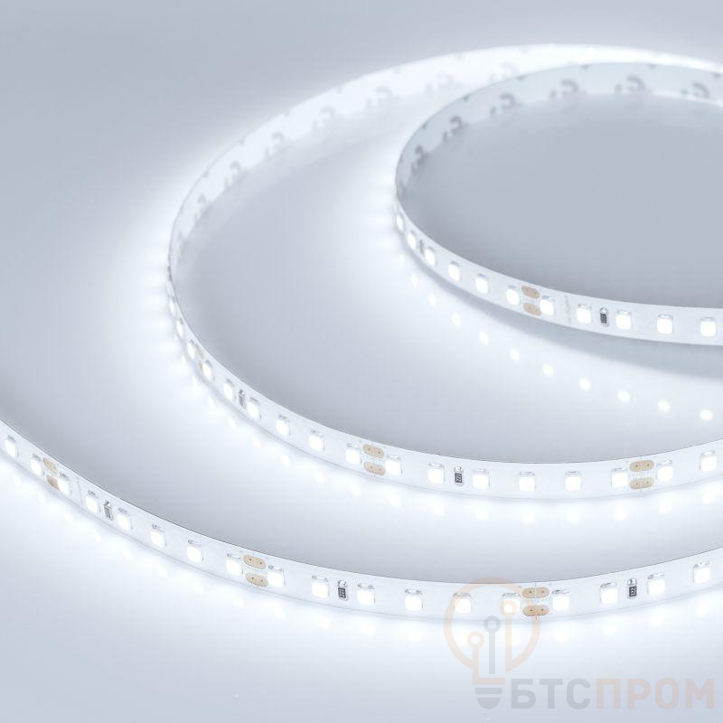 Светодиодная лента RT серии A120 (монтажная бобина 50 м). Светодиоды SMD 2835, 120 шт/м, белая плата шириной 8 мм, скотч 3M. Цвет БЕЛЫЙ 6000K, индекс цветопередачи CRI>85, угол 120°. Питание 24 В, мощность 9.6 Вт/м (480 Вт на 50 м). Размеры 50000x8x1.5 мм. Мин. отрезок 50 мм, 6 светодиодов. Цена за 1 м. Разрезать перед подключением. Макс. длина подключения 5 м. Рекомендуется установка на профиль.