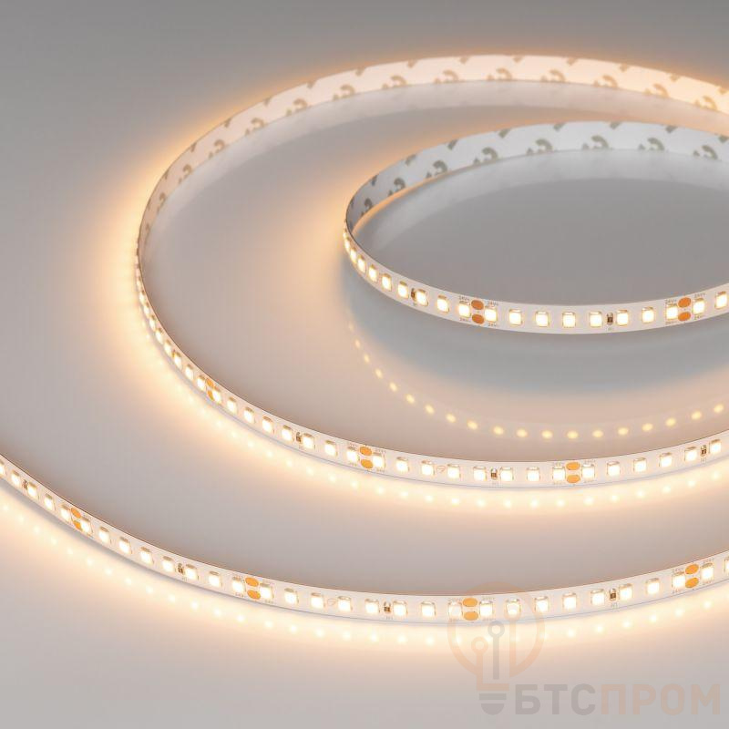 Светодиодная высокоэффективная лента RT серии A160. Светодиоды SMD 2835, 160 шт/м, белая плата шириной 8 мм, скотч 3M. Цвет ТЕПЛЫЙ 2700K, высокая световая эффективность 150 лм/Вт, индекс цветопередачи CRI>85, угол 120°. Питание 24 В, мощность 12 Вт/м (60 Вт на 5 м). Размеры 5000x8x1.5 мм. Мин. отрезок 50 мм, 8 светодиодов. Цена за 1 м.