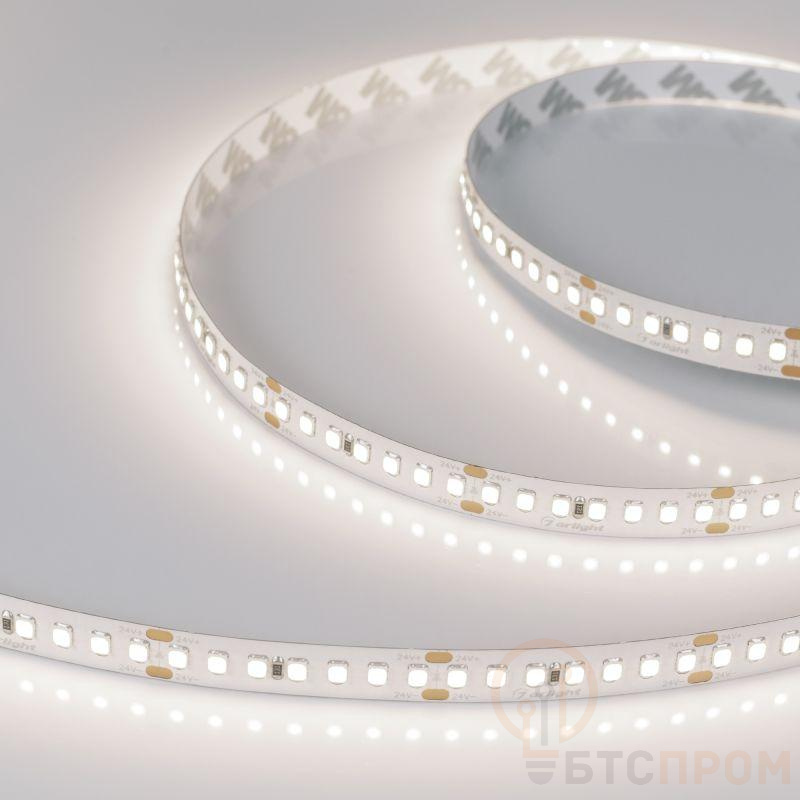 Светодиодная лента RT серии A168. Светодиоды SMD 2835, 168 шт/м, белая плата шириной 10 мм, скотч 3M. Цвет ДНЕВНОЙ 4000K, индекс цветопередачи CRI>85, угол 120°. Питание 24 В, мощность 17 Вт/м (85 Вт на 5 м). Размеры 5000x10x1.5 мм. Мин. отрезок 41.67 мм, 7 светодиодов. Цена за 1 м.