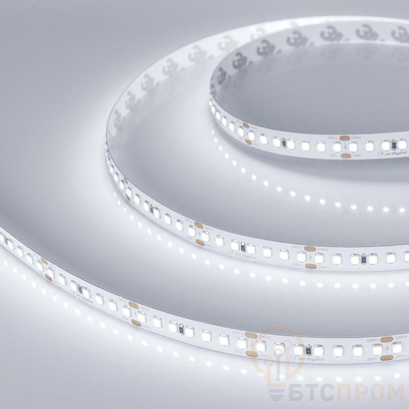 Светодиодная лента RT серии A168. Светодиоды SMD 2835, 168 шт/м, белая плата шириной 10 мм, скотч 3M. Цвет БЕЛЫЙ 6000K, индекс цветопередачи CRI>85, угол 120°. Питание 24 В, мощность 17 Вт/м (85 Вт на 5 м). Размеры 5000x10x1.5 мм. Мин. отрезок 41.67 мм, 7 светодиодов. Цена за 1 м.