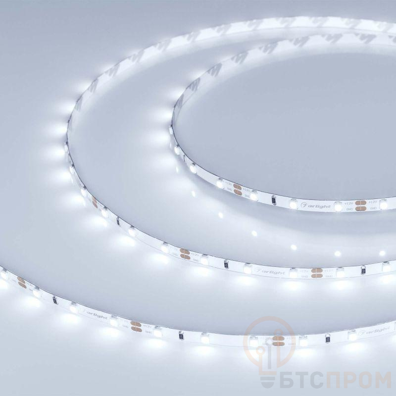 Светодиодная узкая лента RT серии A60. Светодиоды 2835, 60 шт/м, белая плата шириной 5 мм, скотч 3M. Цвет ХОЛОДНЫЙ 8000K, индекс цветопередачи CRI>85, угол 120°. Питание 12 В, мощность 4.8 Вт/м (24 Вт на 5 м). Размеры 5000х5х1.5 мм. Мин. отрезок 50 мм, 3 светодиода. Цена за 1 м.