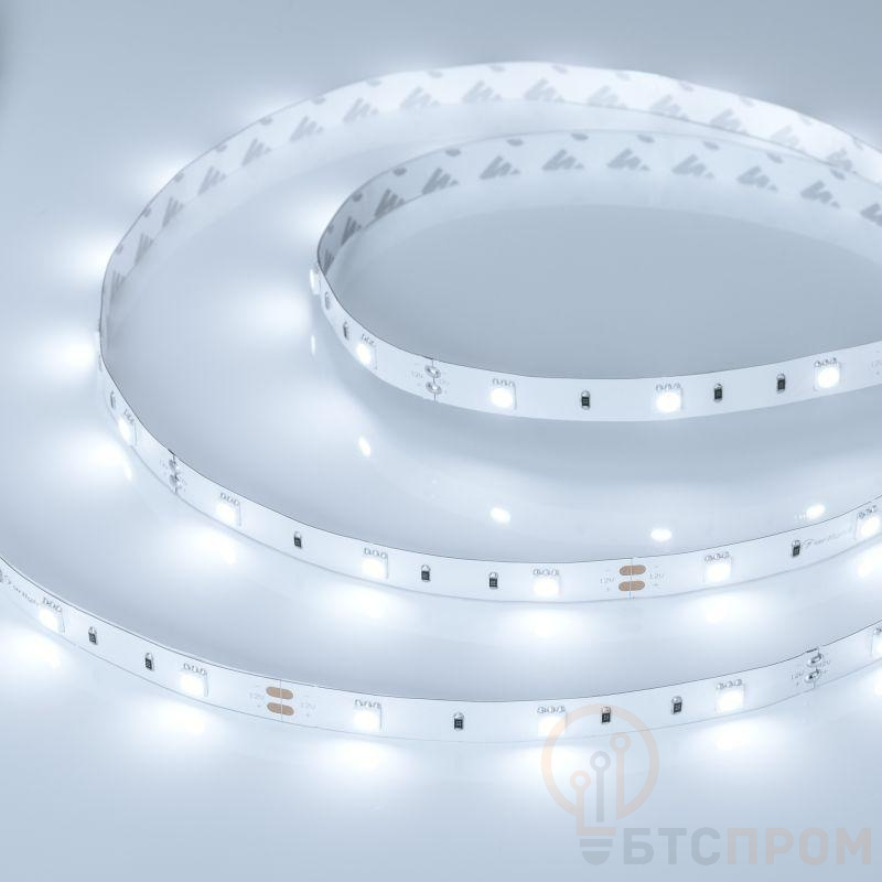 Светодиодная лента RT серии B30. Светодиоды 5060, 30 шт/м, белая плата шириной 10 мм, скотч 3M. Цвет БЕЛЫЙ 6000K, индекс цветопередачи CRI>85, угол 120°. Питание 12 В, мощность 7.2 Вт/м (36 Вт на 5 м). Размеры 5000x10x2.2 мм. Мин. отрезок 100 мм, 3 светодиода. Цена за 1 м.