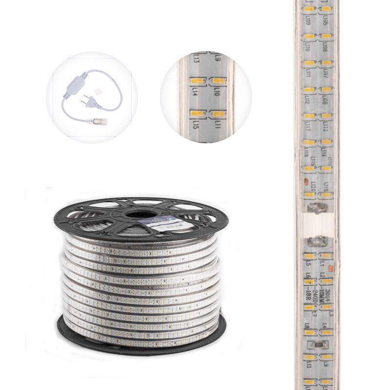 Лента светодиодная SMD3014 6.5x15мм 240LED/м 220В IP67 тепл. бел. (уп.100м) Neon-Night 142-804