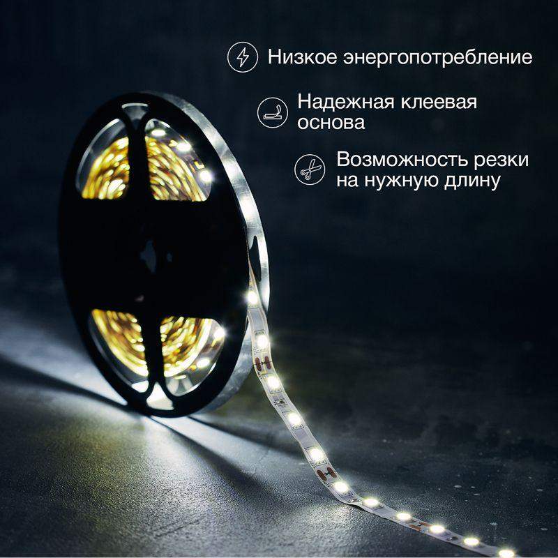 • Следуя несложной инструкции, можно легко отрезать и подключить ленту нужной длины (модуль резки 50 мм). Монтаж ленты осуществляется вручную с помощью дополнительных аксессуаров (профиль, коннекторы, диммеры) и не требует специальной квалификации. Для более надежной фиксации ленты к поверхности можно использовать крепеж арт. 07-4210
