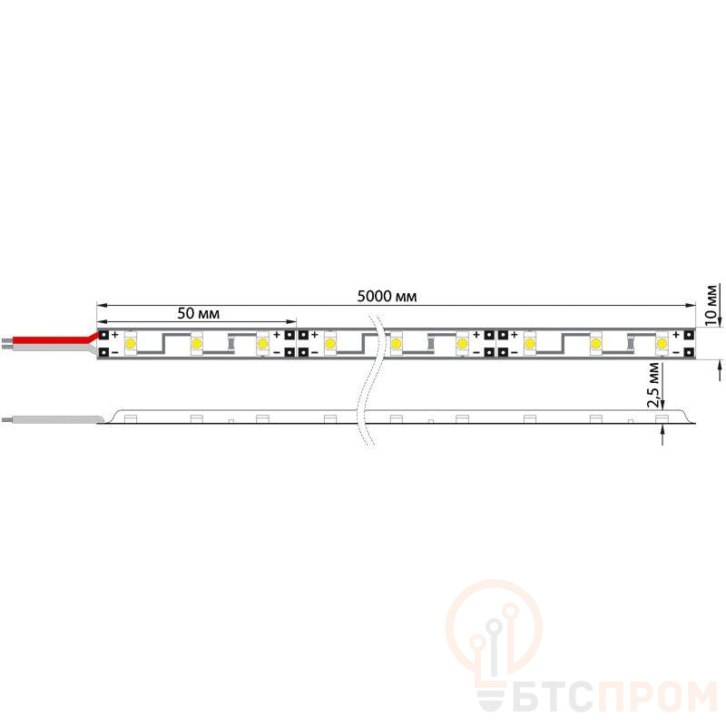 • Светодиодная лента 12 В поставляется в катушках длиной 5 м