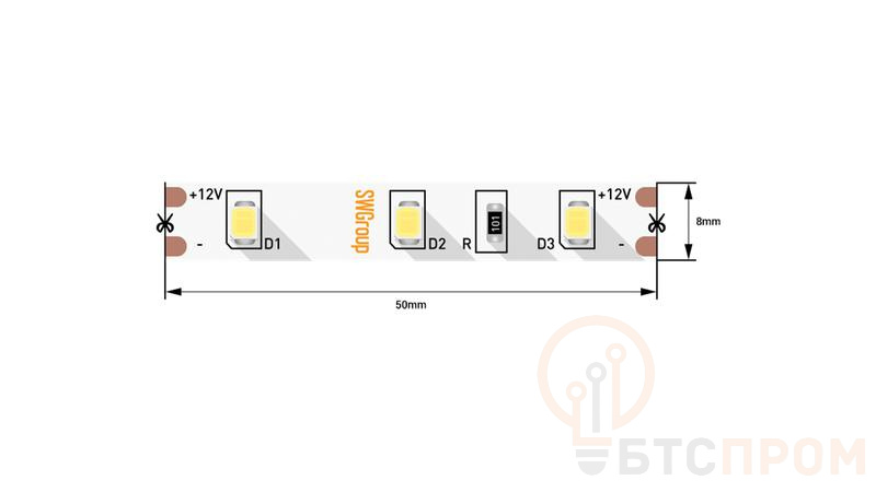 SWG Standard 00-00007261 2835 60LED/м 4.8Вт/м холод. бел. 12В IP20 со скотчем 3М — базовая лента холодного белого света (6500K). Плотность 60 диодов/м. Напряжение 12В. Скотч 3М. IP20. Упаковка 5 метров. Мощность 4.8Вт/м. Используется для простых задач подсветки.