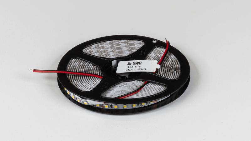 SWG Standard 00-00009247 3528 120LED/м 9.6Вт/м нейтр. бел. 24В IP20 со скотчем 3М — лента нейтрального света для работы от 24В. Диоды 3528. Плотность 120/м. Клей 3М. IP20. Бухта 5 метров. Мощность 9.6Вт/м. Для внутренней подсветки.