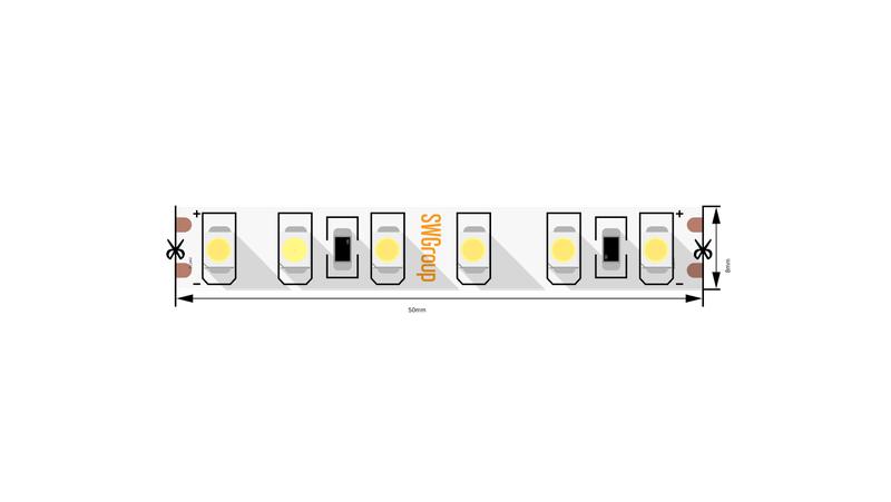 Лента светодиодная стандарт 3528 120LED/м 9.6Вт/м тепл. бел. 24В IP20 со скотчем 3М (уп.5м) SWG Standard 00-00009248