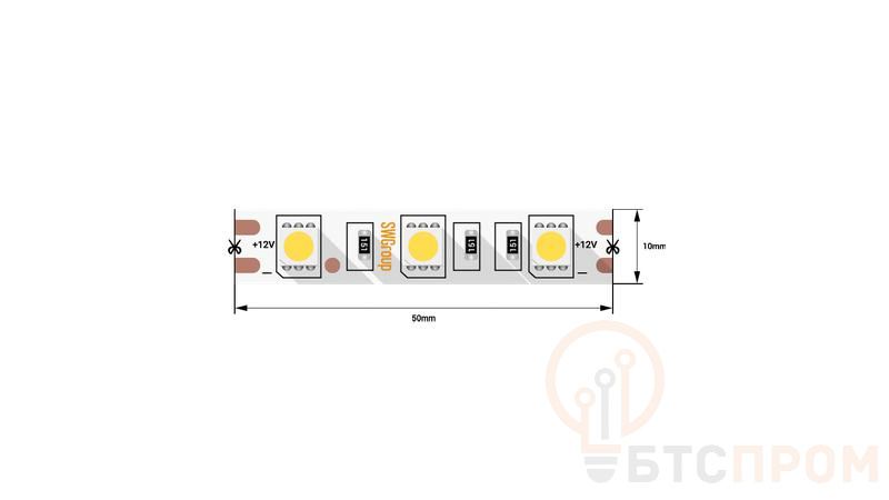 Лента светодиодная стандарт 5050 60LED/м 14.4Вт/м холод. бел. 12В IP20 со скотчем 3М (уп.5м) SWG Standard 00-00007265