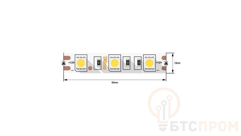 Лента светодиодная стандарт 5050 60LED/м 14.4Вт/м нейтр. бел. 12В IP20 со скотчем 3М (уп.5м) SWG Standard 00-00007267