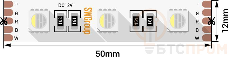 Лента светодиодная стандарт 5050 60LED/м 19.2Вт/м RGB + холод. бел. 12В IP20 (уп.5м) SWG Standard 00-00005745