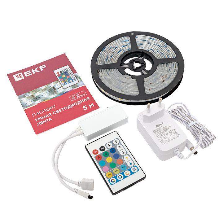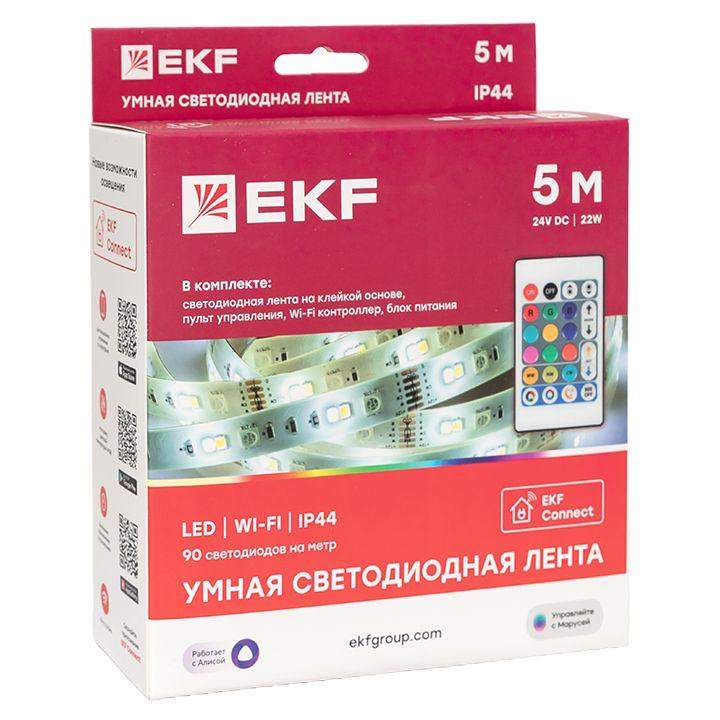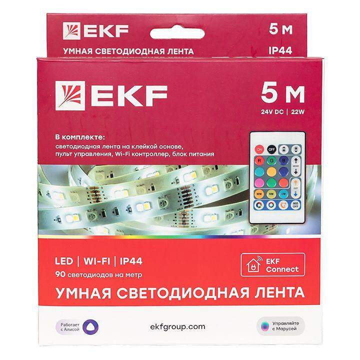 Умные светодиодные ленты EKF Connect позволяют изменять цветовую температуру, цвет и яркость, чтобы создать ту атмосферу, которая нужна в данный момент. Умными светодиодными лентами можно дистанционно управлять по Wi-Fi с помощью мобильного приложения EKF Connect Home для iOS и Android. В приложении можно устанавливать расписание включения и выключения. Также поддерживается голосовое управление с помощьюАлисы от Яндекса, Маруси от Mail.ru Group и Салюта от Сбера. В комплекте со светодиодной лентой есть инфракрасный пульт, что даёт возможность управлять ей и без телефона. Преимущества: Тёплый или холодный белый свет на выбор; Регулировка яркости; Цветная подсветка; Работает с iOS и Android; Работает с Алисой, Марусей и Салютом. Применение: Автоматизация освещения в квартире; Цветная подсветка интерьера