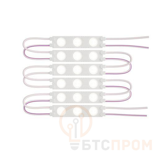 Светодиодные LED-модули - более универсальный аналог светодиодным лентам. В отличие от лент, их можно наклеивать под любыми углами на любую поверхность и свободно менять направление монтажа между каждым модулем.Цепочку LED-модулей можно обрезать после любого модуля без нарушения его работы по оставшейся длине.Это современный способ создания внутреннего освещения, подсветки ниш, лестничного пространства, систем хранения, а так же декоративного и художественного оформления любых объектов и любых форм.Легко и быстро устанавливается на любой гладкой поверхности с помощью скотча, расположенного на оборотной стороне модулей.Светодиодные модули закрытого типа в герметичном корпусе из ABS пластика с линзами и платой-радиатором.В упаковке находится 5 метровая лента из 40 модулей, на каждом модуле расположено по 3 светодиода с цветовой температурой 6500 К. Степень защиты модулей: IP65 применение внутри и снаружи помещений.
