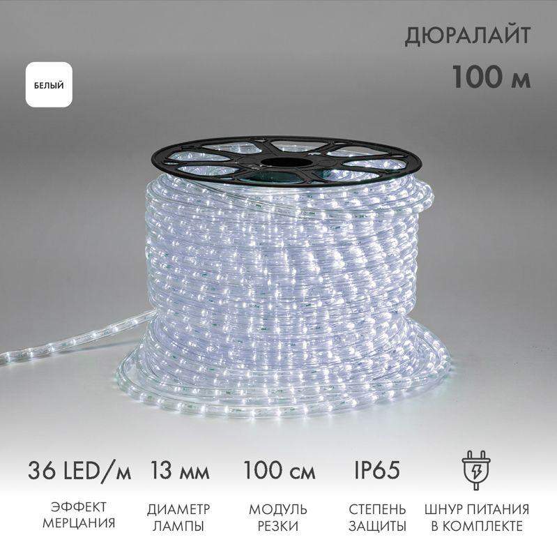 Шнур светодиодный Дюралайт эффект мерцания 2Вт 36LED/м бел. (уп.100м) Neon-Night 121-255