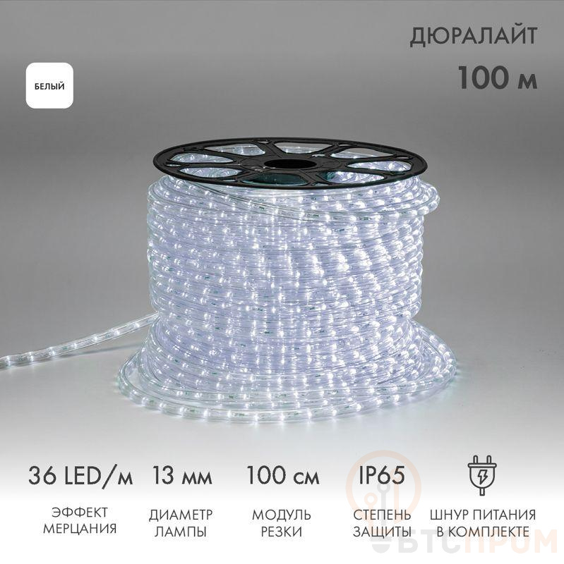 –Шнур светодиодный Дюралайт эффект мерцания 2Вт 36LED/м бел. (уп.100м) Neon-Night 121-255