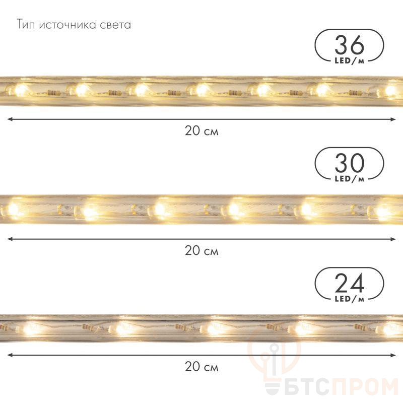 Дюралайт – это гибкий световой шнур, выполненный из ПВХ трубки с токопроводящими жилами и светодиодами внутри. Применяется для декоративной и контурной подсветки различных объектов. Также используется при изготовлении каркасных фигур и консолей. Дюралайт работает в режиме постоянного свечения. Свечение в режиме динамики возможно при приобретении контроллера (арт. 123-013). Для подключения дюралайта в комплекте поставляется блок питания. При соединении дюралайта с разъемом (муфтой) необходимо заизолировать свободное воздушное пространство разъема (муфты) морозостойким силиконовым герметиком, предотвращающим попадание влаги. Сверху данного соединения необходимо использовать термоусаживаемую трубку с клеевым слоем. Дюралайт поставляется в бухте длиной 100 м. Следуя несложной инструкции, пользователь может легко отрезать и подключить отрезок дюралайта необходимой длины. Модуль резки составляет 1 м. Для подключения каждого дополнительного отрезка дюралайта понадобится дополнительный блок питания, который приобретается отдельно (арт. 124-011).