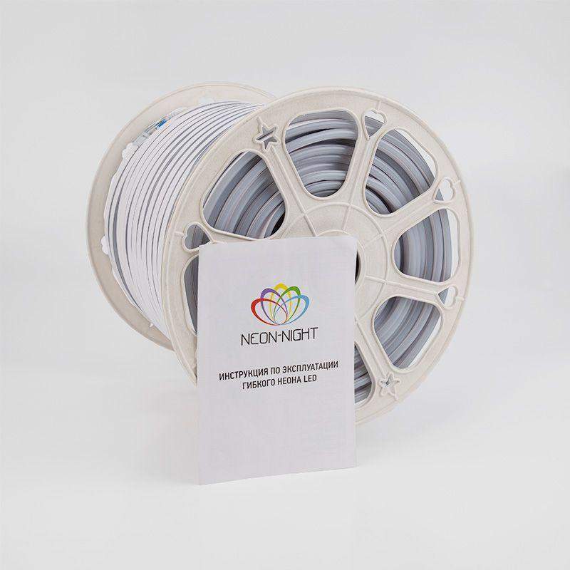 Гибкий неон - световой шнур выполненный из матовой белой ПВХ трубки с токопроводящими жилами и светодиодами внутри. Используется для декоративной и архитектурной подсветки объектов, так же широко распространён в украшении интерьера. Шнур имеет два токопроводящих провода внутри и используется в режиме постоянного свечения. Теплый белый гибкий неон 230В поставляется в бухтах длиной 100 м, имеет модуль резки 1 метр, следуя несложной инструкции легко можно отрезать и подключить гибкий неон нужной длины. Каждая бухта уже укомплектована комплектом подключения, максимальная подключаемая на 1 шнур длина 100 м. Дополнительные шнуры можно приобрести отдельно арт. 134-503. При подключении гибкого неона к соединительному разъему (муфте) необходимо заизолировать свободное воздушное пространство соединительного разъема (муфты) морозостойким силиконовым герметиком, предотвращающим попадание влаги. Сверху данного соединения необходимо использовать термоусаживаемую трубку.