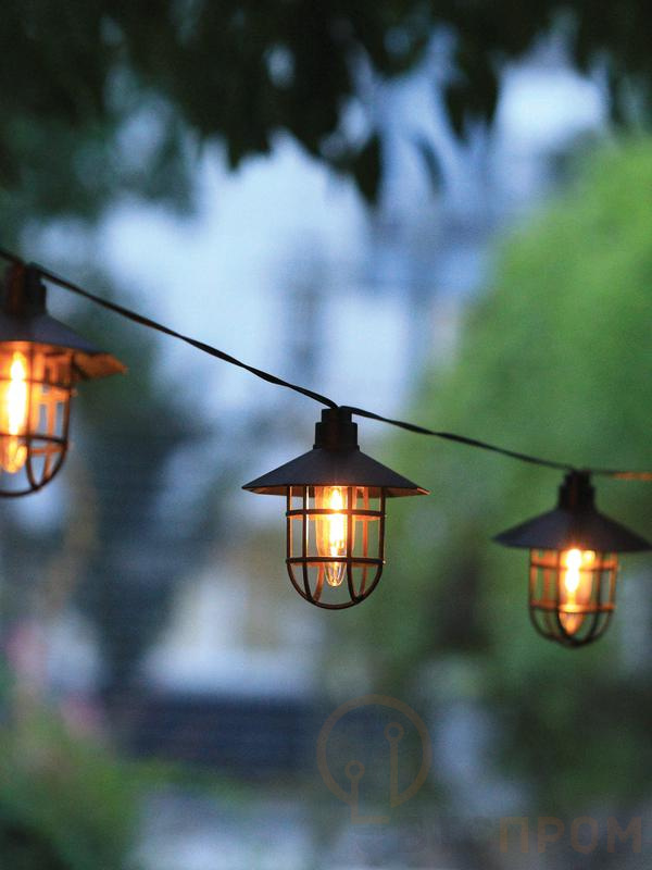 Садовая светодиодная гирлянда "лофт" на солнечной батарее для декоративной подсветки сада, веранды, балкона. При максимальной зарядке уличная гирлянда способна непрерывно светить до 8 часов. Состоит из 8 металлических фонарей, длина световой части - 2,8м. Заряжается днем и загорается автоматически с наступлением темноты. Литиевый аккумулятор 3.7В 600мАч