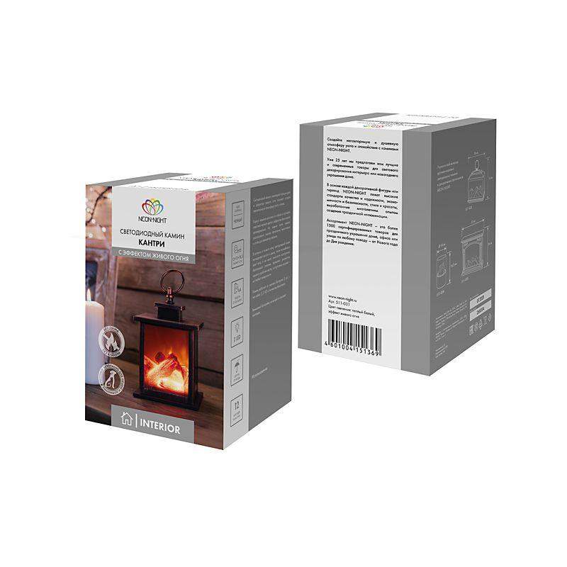 Камин светодиодный "Кантри" 12х12х18.5см эффект живого огня элементы питания 3хAAA (не в компл.) Neon-Night 511-031