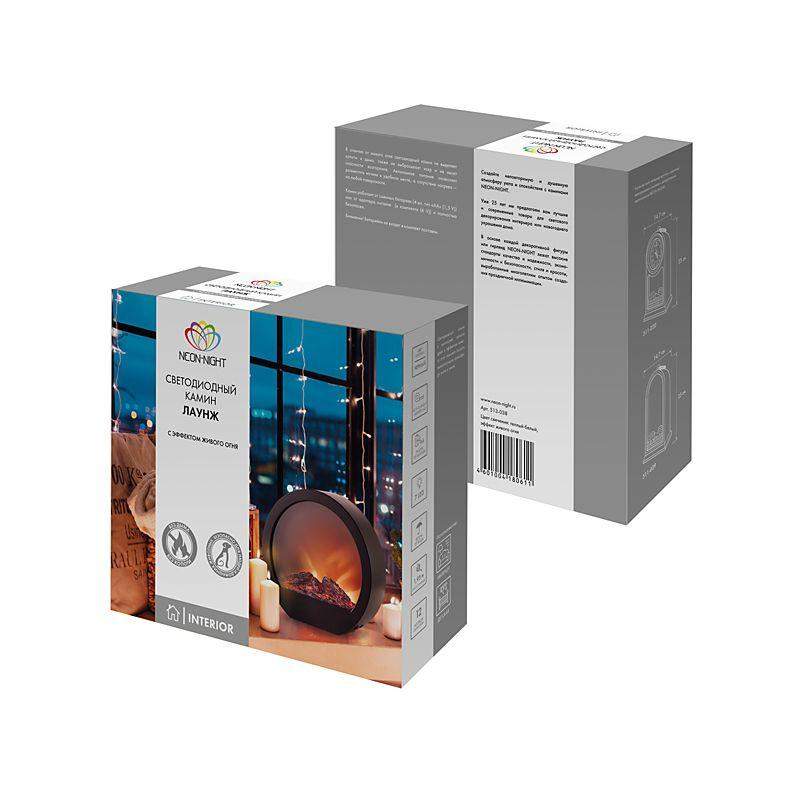 Камин светодиодный "Лаунж" 35.3х12.4х33.7см эффект живого огня с адаптером питания элементы питания 4хAA (не в компл.) Neon-Night 513-038