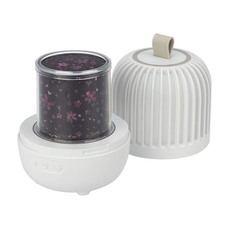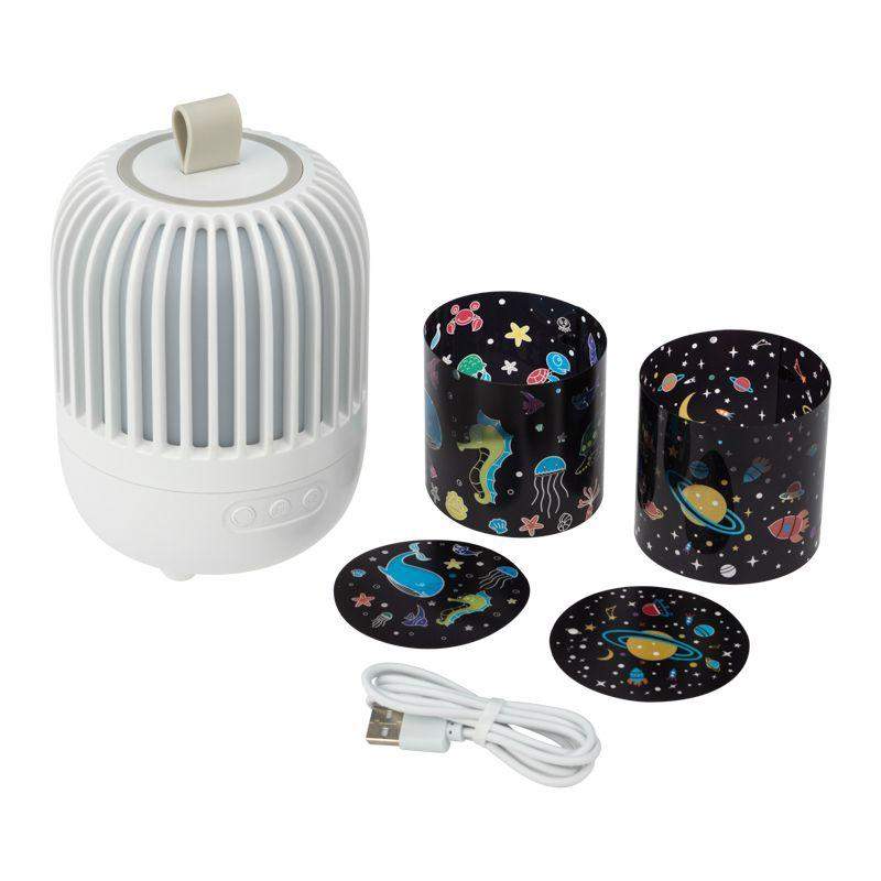Светодиодный ночник-проектор с 3 сменными слайдами создает проекции с карточек на любые поверхности. Проектор оснащен вращающимся механизмом, который позволит наполнить комнату тематическими картинками: Вселенная/Морская/Цветущая вишня. Проектор обладает музыкальной функцией, нажатием соответствующей кнопки можно переключаться между 8 мелодиями. С помощью такого проектора можно организовать увлекательную игру, которая непременно понравится детям или оформить интерьер световыми проекциями. Проектор имеет встроенный аккумулятор, время работы которого составляет от 3,5 до 24 часов. В комплекте есть USB-шнур для зарядки устройства. Перед использованием необходимо удалить защитную пленку со слайдов, для большей яркости.