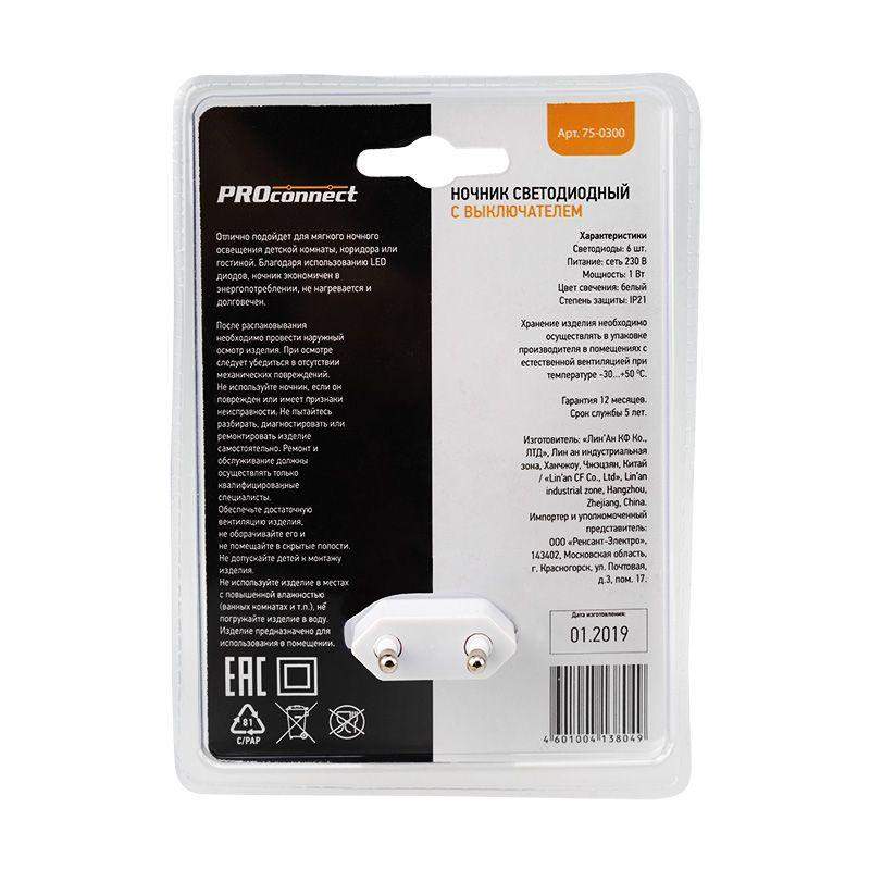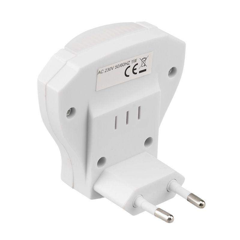 Светодиодный ночник может быть использован для рассеянного ночного освещения как в квартире, так и на даче (в детской комнате, коридорах, в гостиной). Выключатель на торцевой панели дает возможность включить/выключить устройство. Технология данного ночника позволяет экономить электроэнергию и не генерирует тепло, поэтому полностью безопасны для вас и ваших детей. Технические характеристики: Номинальное напряжение, В / частота, ГЦ AC 230V / 50 Номинальное выходное напряжение, В DC 24 Номинальный выходной ток, A 0,005 Номинальная мощность, Вт 1 Количество светодиодов, ед. 8 Световой поток, Лм 16 Цветовая температура, К 4000-5000 Наличие датчика освещённости Отсутствует Наличие выключателя Присутствует Класс защиты от поражения электрическим током: II Класс энергоэффективности: A Классификация по степени защиты от попадания пыли, твердых частиц и влаги, IP: 20 Использовать только внутри помещения Диапазон рабочих температур 0° ...+45° Размер изделия: 6,5х7х2,5 см