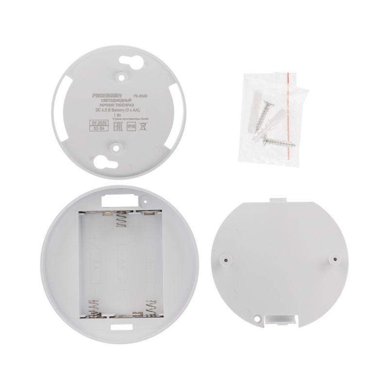 Светодиодный ночник PROсonnect TOUCHPAD предназначен для освещения бытовых помещений, коридоров, спален и санузлов в темное время суток. Благодаря мягкому белому свечению создает уют и комфорт в помещении. Выполнен из качественного белого пластика. Светодиодное освещение служит гораздо дольше обычных ламп и значительно сокращает энергопотребление. Сенсорная панель и встроенный диммер позволяют легко и просто настроить комфортную яркость свечения. Крючок и питание от трех батареек типа АА дают возможность разместить ночник в любой части помещения или закрепить на стене. Размер изделия: 7,8х7,8х5,7 см