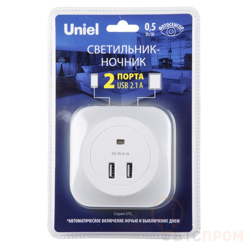–Светильник ночник DTL-321 White/Sensor/2USB с фотосенсором (день-ночь) 2USB бел. Uniel UL-00007348