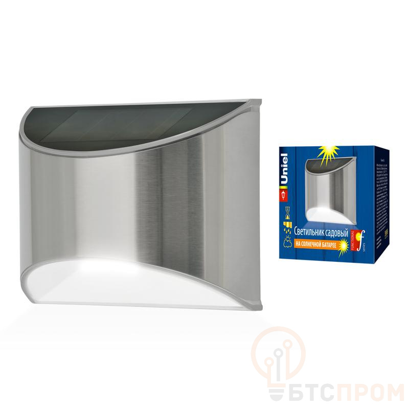 Настенный уличный светильник на солнечной батарее USL-F-150/МТ090 SUPERBRIGHT предназначен для декоративной подсветки фасадов, заборов, ступенек. Крепится на вертикальную поверхность. Источник света — светодиод (4 шт), цвет свечения — белый. Срок службы - до 30000 часов. Изготовлен из серебристого металла и пластика, защита от влаги IP44. Подключение к электросети не требуется. Встроенный аккумулятор 300 мАч, заряжается в светлое время суток с помощью солнечной панели. Полностью заряженный аккумулятор обеспечивает свечение до 8 часов. В комплект входит набор для монтажа. Размер изделия 80*100*50 мм (В*Д*Ш). Вес изделия 114 гр. Гарантия 6 месяцев.