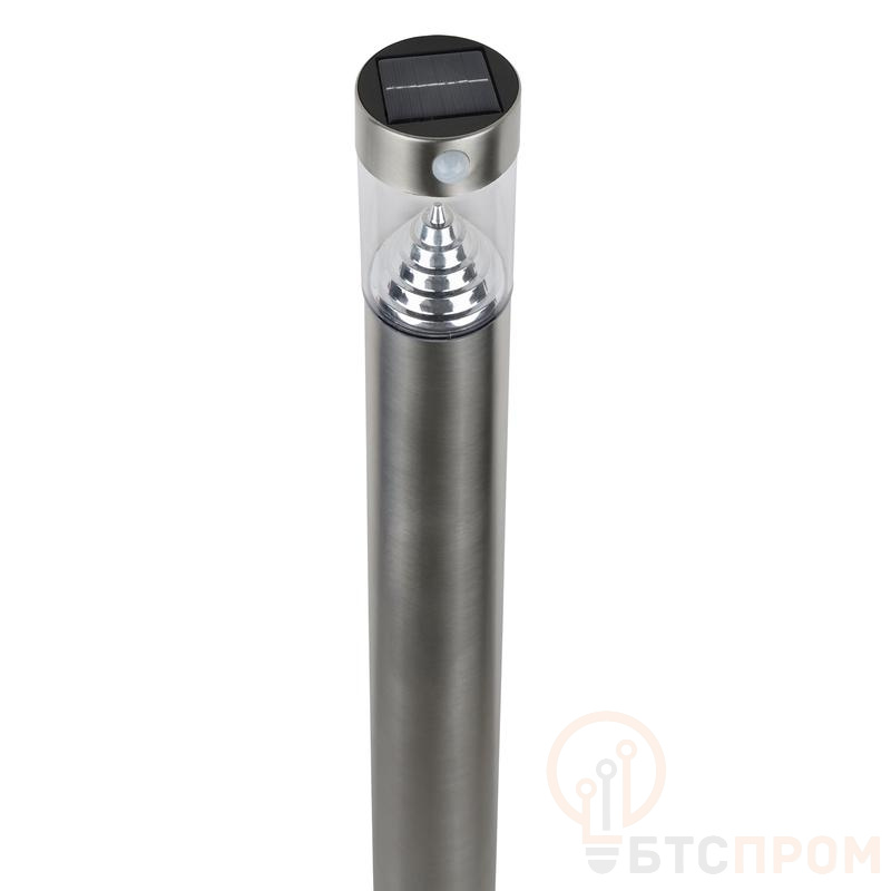 Садовый светильник на солнечной батарее USL-F-168/МT800 SENSOR с датчиком движения предназначен для уличного освещения и декоративной подсветки зданий, дорожек, высоких газонов. Светильник работает в двух режимах: дежурное освещение (постоянная подсветка в темное время суток) и рабочее освещение (яркая подсветка, включается при срабатывании датчика движения). Радиус действия датчика движения — 5 м. Яркая подсветка продолжает работать еще 14 сек после окончания движения в радиусе действия датчика. В светильнике используется светодиод (4 шт), цвет свечения - белый. Срок службы - до 50000 часов. Светильник предназначен для уличной подсветки, поэтому рассчитан на работу при высоких и низких температурах. Корпус светильника изготовлен из серебристого металла, защита от влаги IP44. Подключение к электросети не требуется. Встроенный аккумулятор 600 мАч, заряжается в светлое время суток с помощью солнечной панели. Полностью заряженный аккумулятор обеспечивает освещение до 8 часов. Размер изделия 800*76*76 мм (В*Д*Ш). Вес изделия 640 гр. Гарантия 12 месяцев.