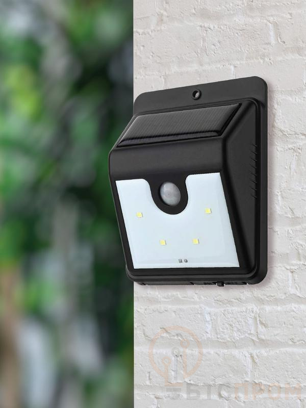 Уличный светильник на солнечной батарее с датчиком движения для удобного света на фасаде дома или беседки. Беспроводное устройство в течение дня накапливает энергию на встроенной батарее. В тёмное время суток светильник работает в режиме ночника, а при движении рядом — переключает яркость на 100%. Зона действия датчика - 3м. Датчик света предотвращает включение фонаря днём. Литиевый аккумулятор 3.7В 800мАч. Саморезы для крепления на стену в комплекте
