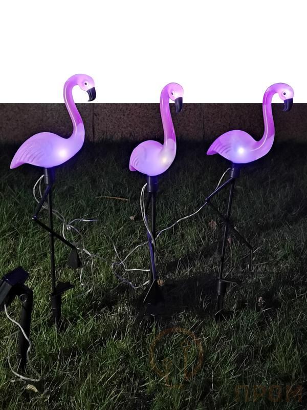 Беспроводной LED-светильник «Фламинго» станет прекрасным украшением для вашего сада. Удобная конструкция — к солнечной панели с аккумулятором подключены 3 фонарика-фламинго. Позволит разместить подсветку у клумбы, украсить пруд или территорию рядом с бассейном, оригинально подсветить тропинку или вход в террасу. Каждая фигурка высотой 52,5 см. Каждый фламинго оснащен двумя яркими светодиодами. Заряд аккумулятора осуществляется при свете солнца при включенном переключателе. С наступлением ночи фламинго загораются. Высота фламинго - 52.5см. Аккумулятор в комплекте NI-MH 600мАч, 1,2В. Время непрерывной работы при полностью заряженном аккумуляторе - 8 часов. 6 ярких светодиодов белого света