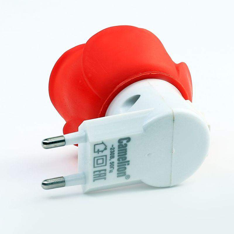 Светильник ночник предназначен для локальной подсветки в детских комнатах, спальнях, гостиных. Camelion NL-172 "Роза", питание от сети 220В, размер 60х60х55мм, источник света - встроенные светодиоды, мощность 0,5Вт, кол-во светодиодов - 5, пластик + резина.