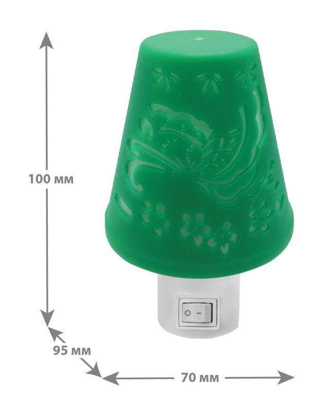 Светильник ночник предназначен для локальной подсветки в детских комнатах, спальнях, гостиных. Camelion NL-194 "Светильник зеленый", питание от сети 220В, размер 100х70х95мм, источник света - встроенные светодиоды, мощность 0,5Вт, кол-во светодиодов - 3, пластик.