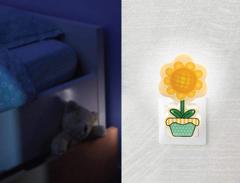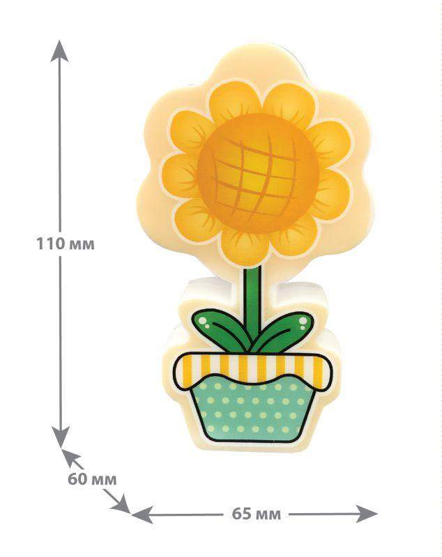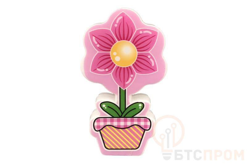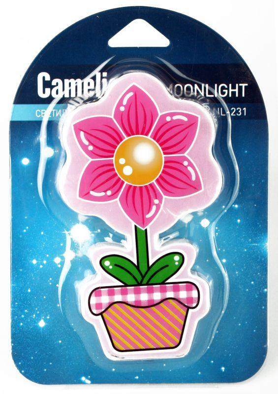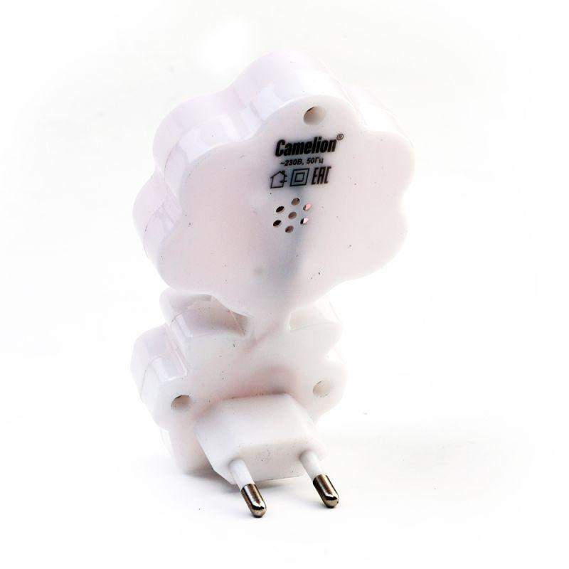 Светильник ночник предназначен для локальной подсветки в детских комнатах, спальнях, гостиных. Camelion NL-231 "Цветок", питание от сети 220В, размеры 110х65х60, источник света - встроенные светодиоды, выключатель на корпусе, пластик
