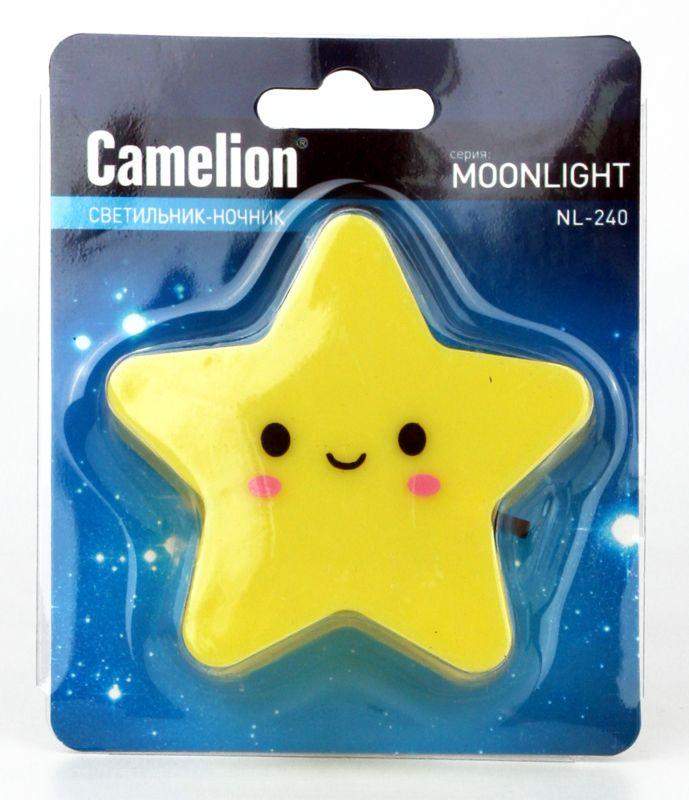 Светильник ночник предназначен для локальной подсветки в детских комнатах, спальнях, гостиных. Camelion NL-240 "Звезда", питание от сети 220В, размеры 70х70х60, источник света - встроенные светодиоды, выключатель на корпусе, пластик